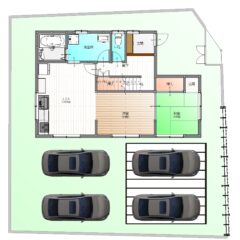 現在リノベーション中の住宅はカースペースが4台分あります。広々とした延床面積87.2㎡の居室空間、更にのびのび入浴できる広さ1坪以上の浴室はゆったり足を伸ばして充実のリラックスタイムを作ります。